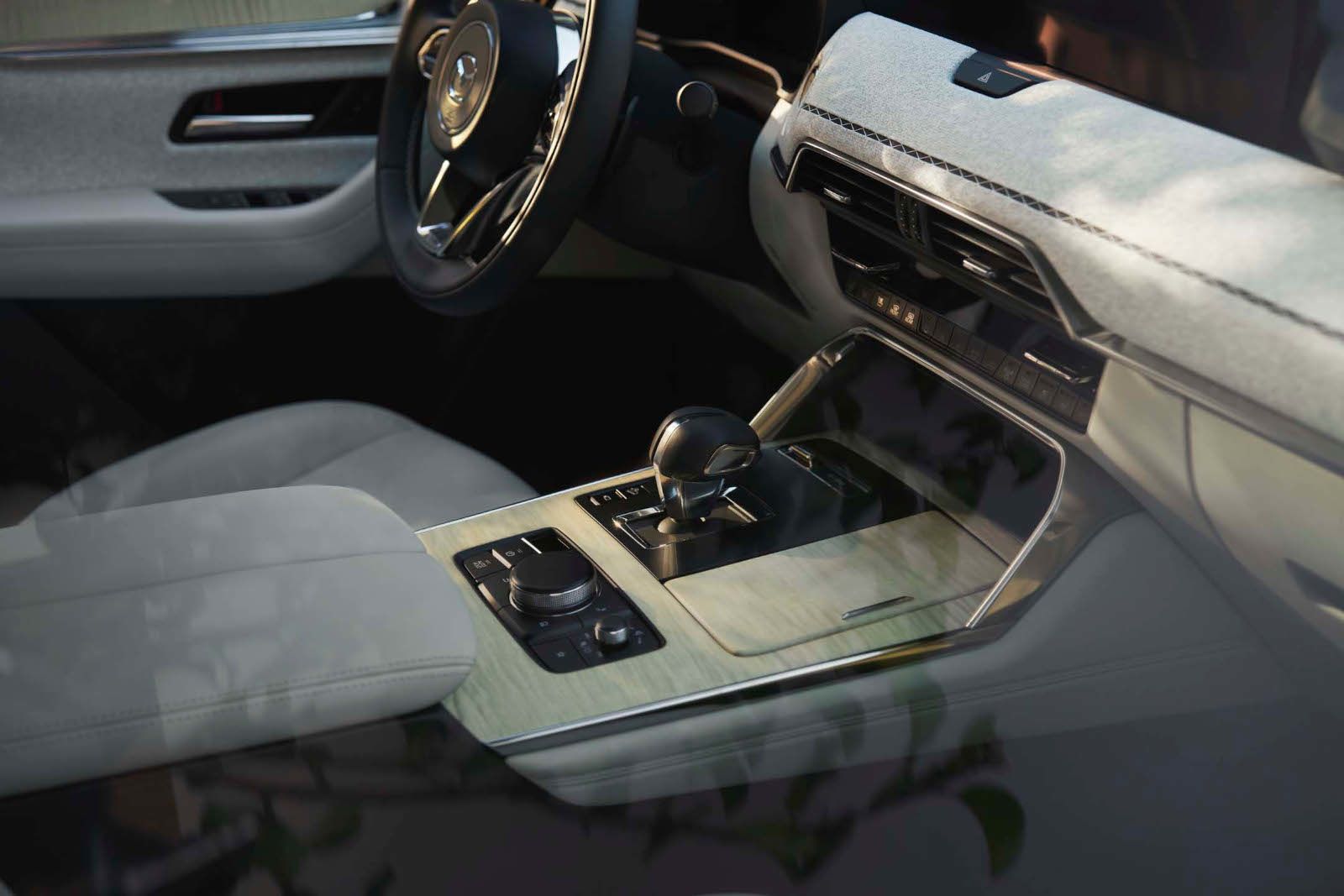 All CX-90 PHEV models include i-Activ All-Wheel Drive, an eight-speed automatic transmission, and Mazda Intelligent Drive Select with Normal, Sport, Off-Road, and EV modes. All trims can tow up to 3,500 lb when equipped with Mazda Genuine Towing Accessories.